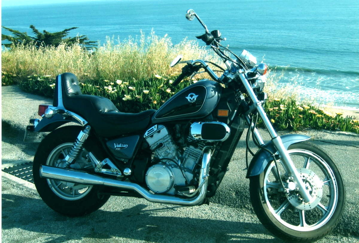 My pretty ride overlooking the Monterey Bay. This picture doesn’t show the full-faced helmet and full leather I rode in.