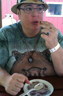 Still no wheat, though. I’m adventurous, but not self-destructive. My lovely hostess, Laurie, indulged me by getting some of the homemade wild blueberry pie and assuring me it was every bit as good as it should be.